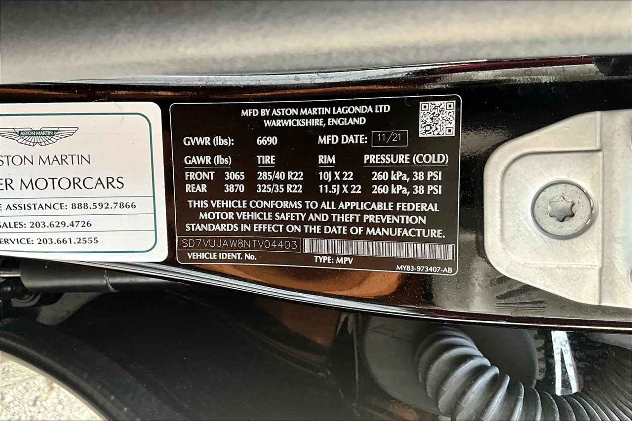 Radio: Aston Martin Premium Audio System -inc: 800 watts, 14 speakers, 10.25" TFT central display, 12.3" TFT driver information display, 12v charging sockets (front, rear and loadspace), AM/FM/DAB radio, Apple CarPlay, Bluetooth mobile phone connectivity w/audio streaming, rotary infotainment system interface, satellite navigation system (HDD), SiriusXM satellite digital audio radio service w/12-month subscription and 4 USB ports